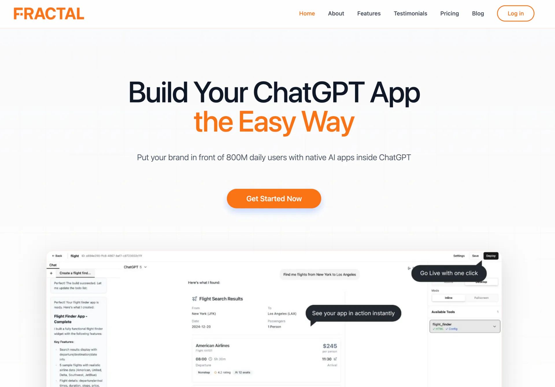 Fractal is a no-code builder that transforms your prompt into a fully functional ChatGPT app. Think of it as "Lovable for ChatGPT apps."